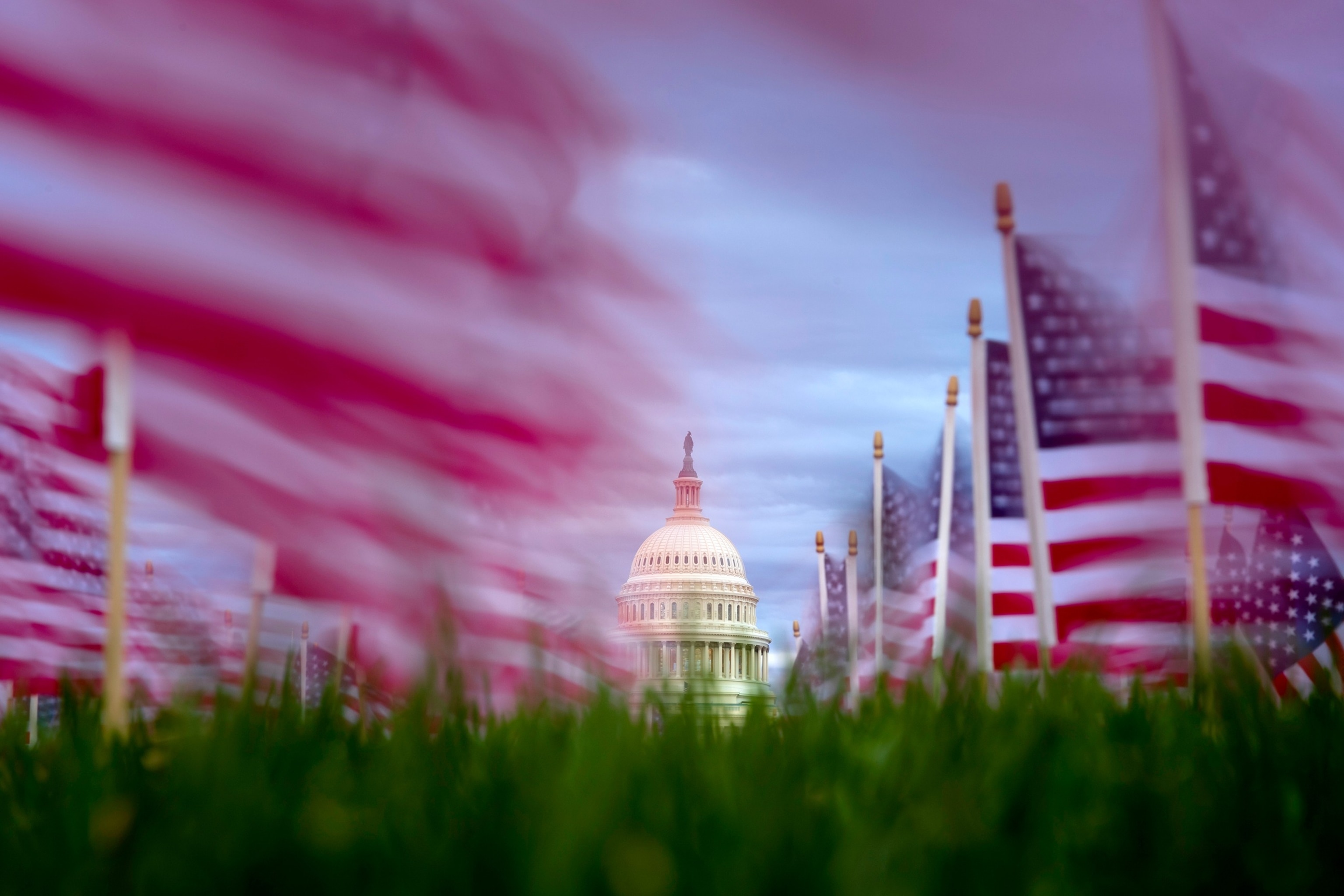 American flags planted to commemorate lung crab victims alert successful the upwind on the National Mall connected November 10, 2025 connected Capitol Hill successful Washington, DC.